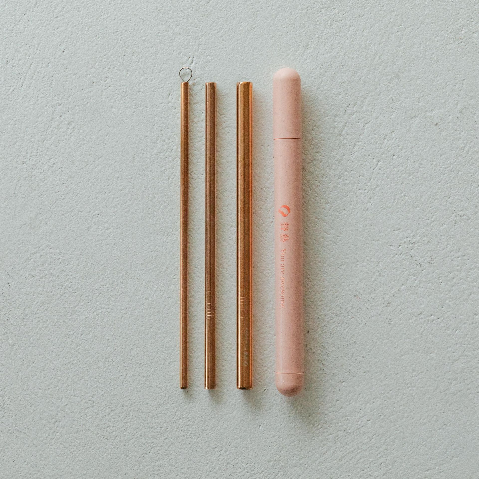 由環保材質304不鏽鋼製成的環保吸管搭配小麥收納盒
